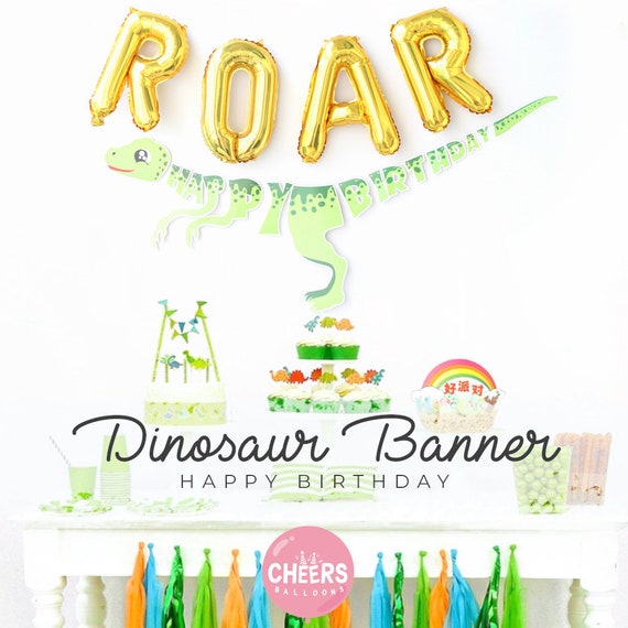 16 Roar Letter Balloons Dinosaur Banner Happy Birthday Etsy De